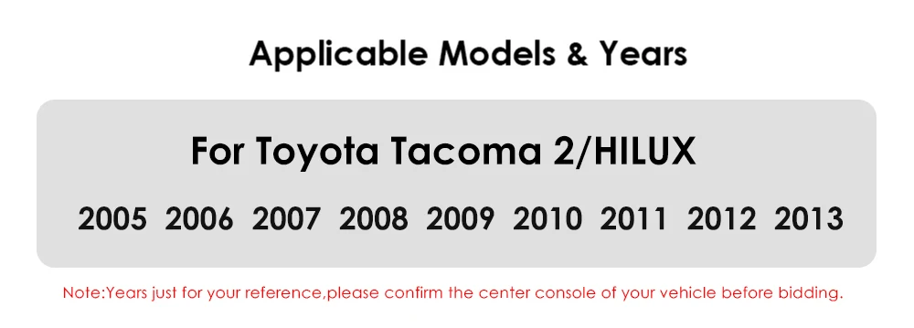 ApplicableModels&Years For Toyota Tacoma 2/HULUX 2005 2006 2007 2008 2009 2010 2011 2012 2013