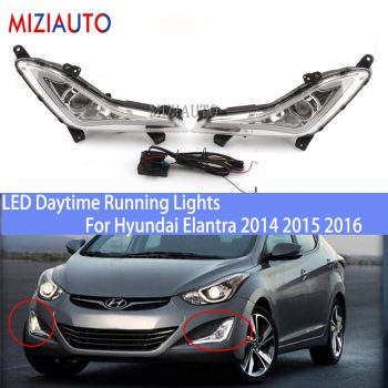 2pcs LED DRL Daytime Running Lights Fog Lights For Hyundai Elantra 2014 2015 2016 Car Front Bumper Fog lamps Turn Singal White