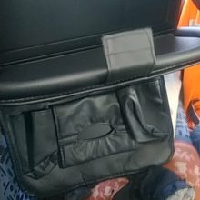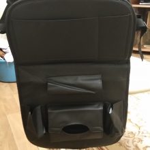 Got this to keep the back of the minivan clean and tidy. The installation is super easy to install and works great to keep all the required items for my toddler nicely organized. + easy to install + ample storage + nice fold-out table to rest tablet, or other things + Wet wipes fit perfectly in the tissue box slot + nicely made and the material fits great with leather seat interior