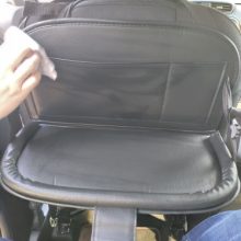 As a tennis parent, we are busy in the summer with road trips to tennis tournaments. Overall, I like the way this organizer is set up. I'm especially fond of the foldable tray table. With that folding table, it's easy for the kids to watch a movie while also hands to eat some snacks. The storage compartments are very easy to access and there's also a place to hold an umbrella. We are happy about our purchase and would recommend it to others.
