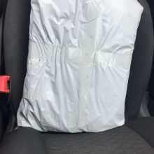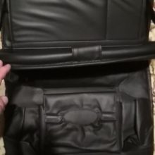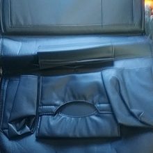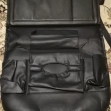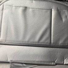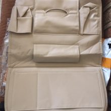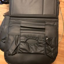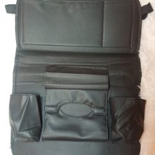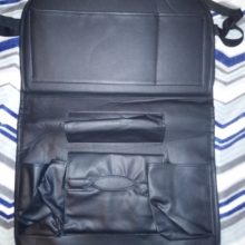 This seatback organizer/protector works great in my SUV as my kid kicks the back of the front seat a lot. It is easy to install and can hold a lot of things. The fabric is faux leather, looks good, and very easy to clean. Highly recommended!