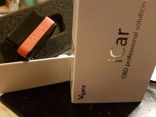 The device is a small adapter that plugged into the vehicle OBD-connector.